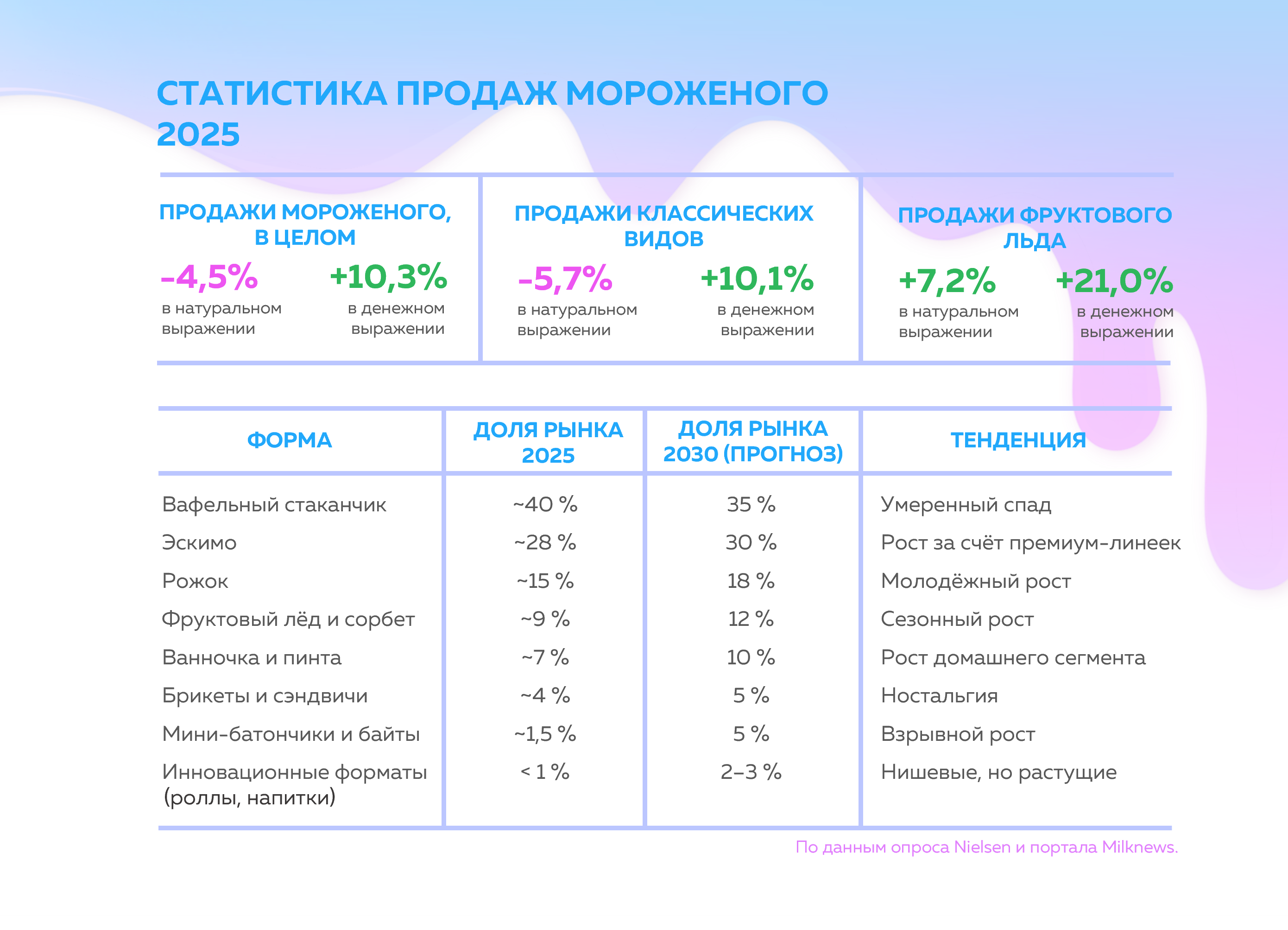 Также, в аналитическом исследовании описаны тренды вкуса на 2026-2030 годы, предпочтения форм мороженого и его вкуса по поколениям (бумеры, зумеры. миллениалы, альфа) и многое другое.
